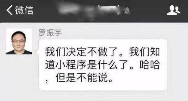 喧闹过后120小时,一大盆冷水来了。《小程序上线7天,罗胖带着1000万用户跑了》。作为第一批参与者,自媒体人罗振宇高调宣布关闭小程序,还神秘兮兮地发布了一句话:“我们决定不做了。我们知道小程序是什么了。哈哈,但是不能说。”